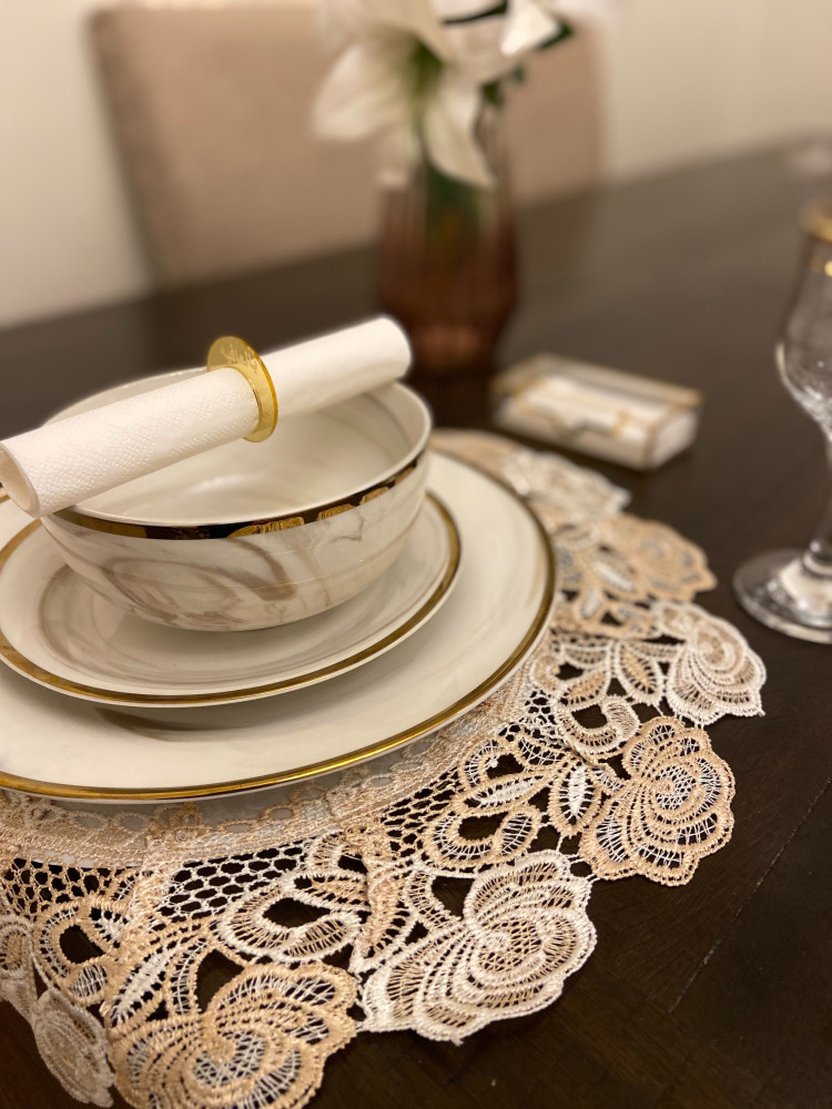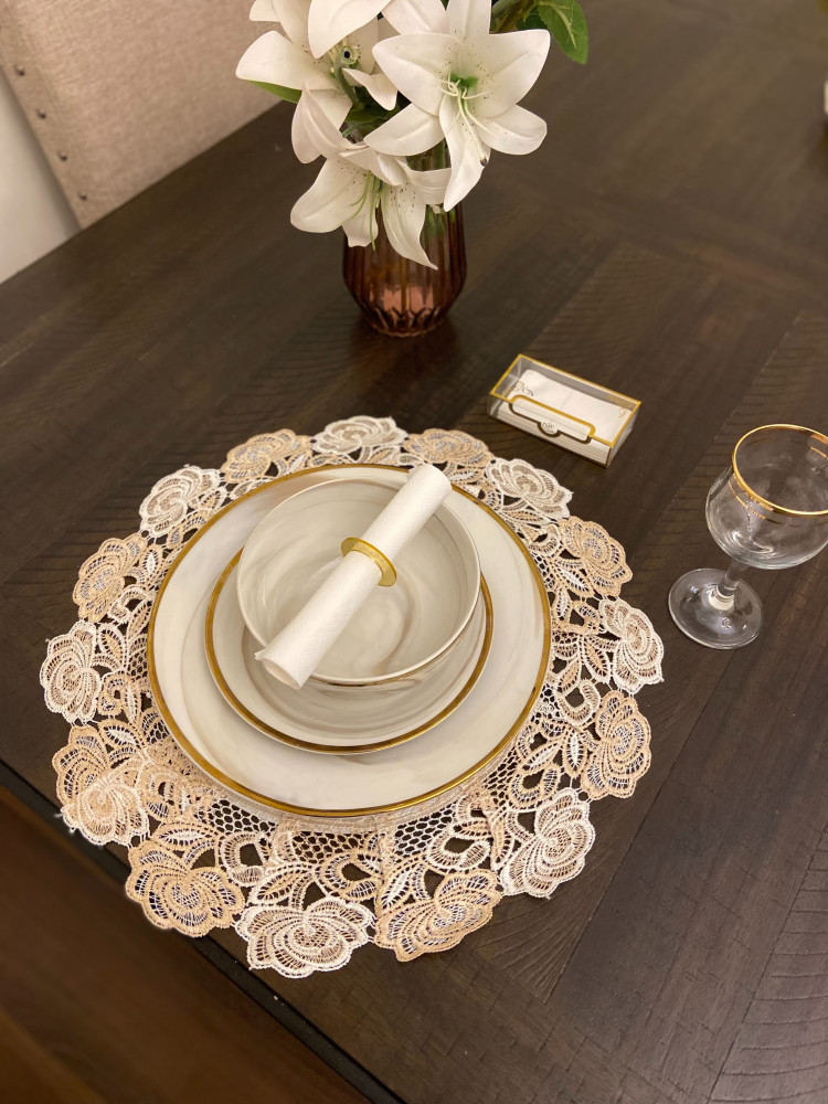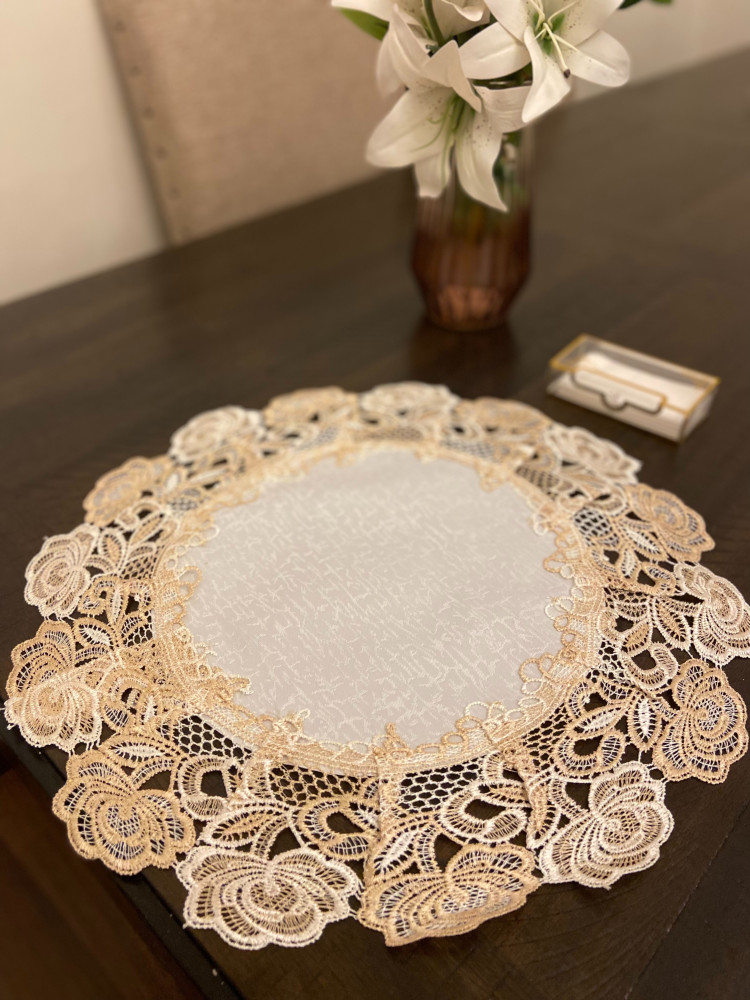 مفرش صحن هو إضافة أنيقة وعملية لأي طاولة طعام، حيث يجمع بين الجمال الوظيفي والزخرفة الفنية. يستخدم لحماية الطاولة من الخدوش والبقع، ويضيف لمسة جمالية فريدة إلى ديكور المائدة. احصلي عليه الآن من متجر فن السفرة.