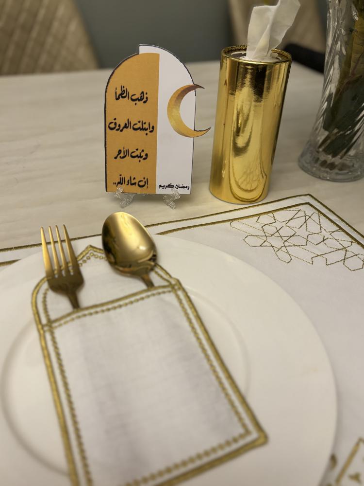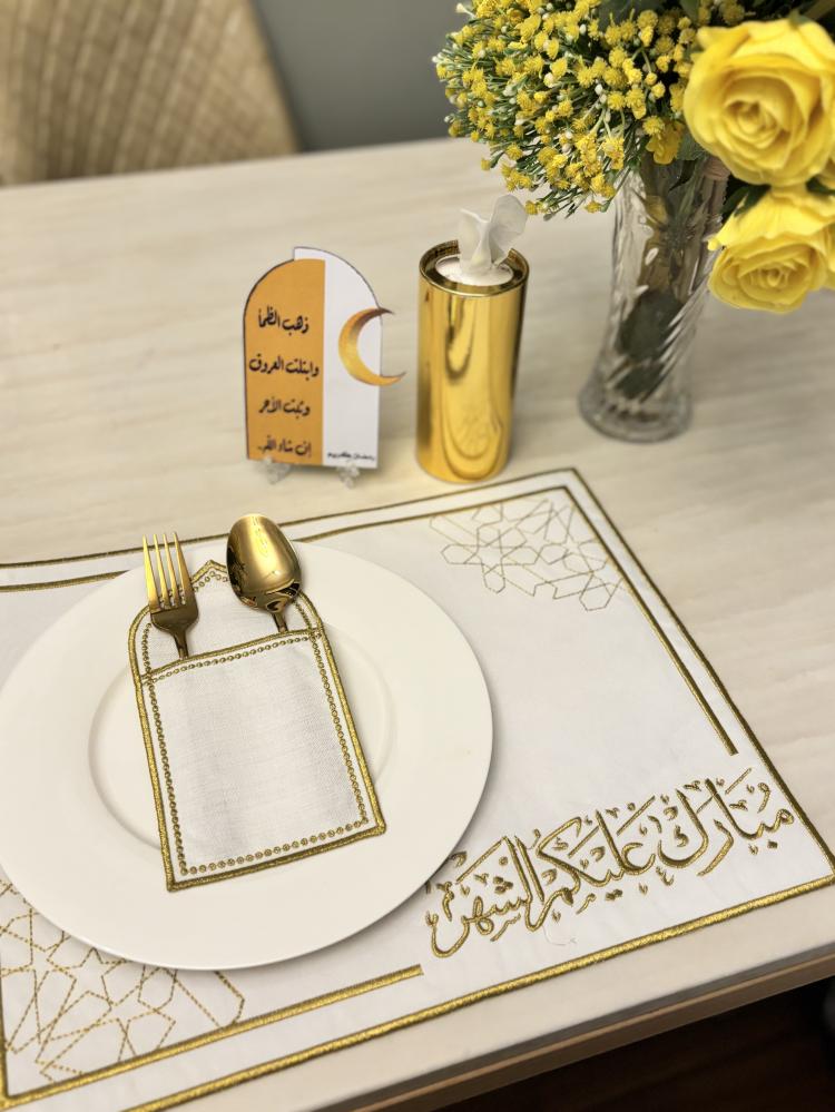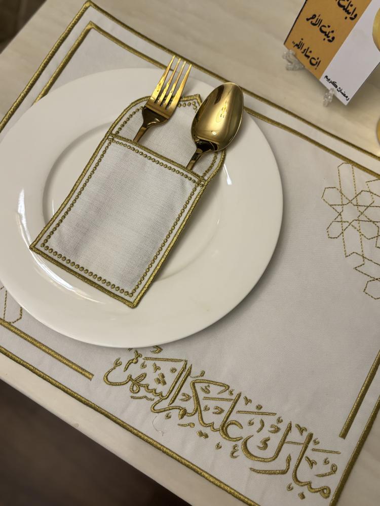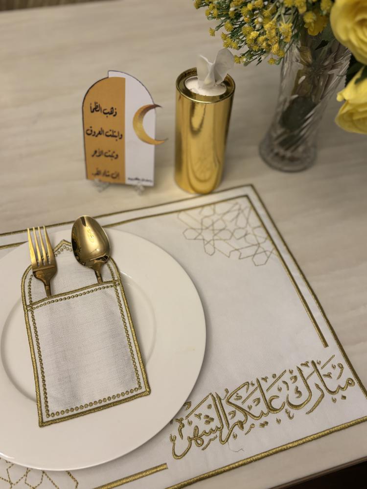 - تتميزاطقم مفارش سفره بتصميم فاخر بأجواء رمضانية يضفي لمسة أنيقة على الطاولة.